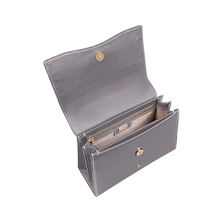 - Shiny, light gold-colored metal parts
